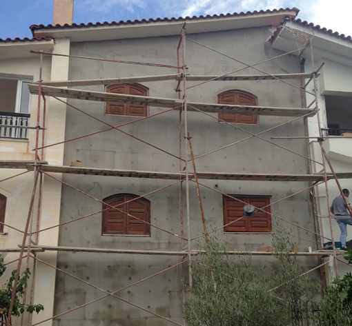 - Τοποθέτηση γωνιόκρανων : Τοποθέτηση γωνιόκρανων με πλέγμα στις ακμές του κτιρίου και περιμετρικά των ανοιγμάτων με σκοπό την διασφάλιση ευθύγραμων ακμών και επιπεδότητα